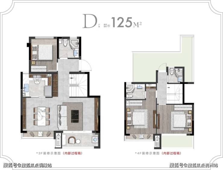 125-146㎡叠墅:下叠赠庭院、上叠带露台,实得率高,改善一步到位