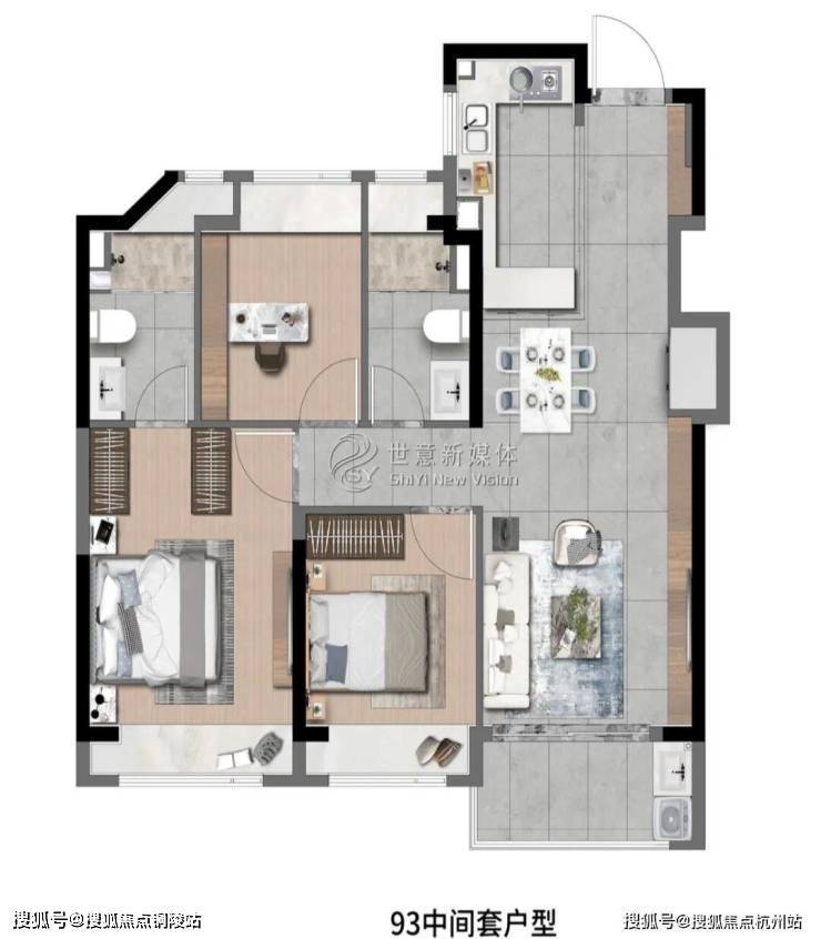 象屿深入考量空间与场景的运用,将生活中看得见与看不见的细节进行了细致打磨。玄关、阳台、厨房、卫浴均设置科学收纳空间,营造高品质生活体验的同时,更带给居者层建面约83㎡3房2厅1卫