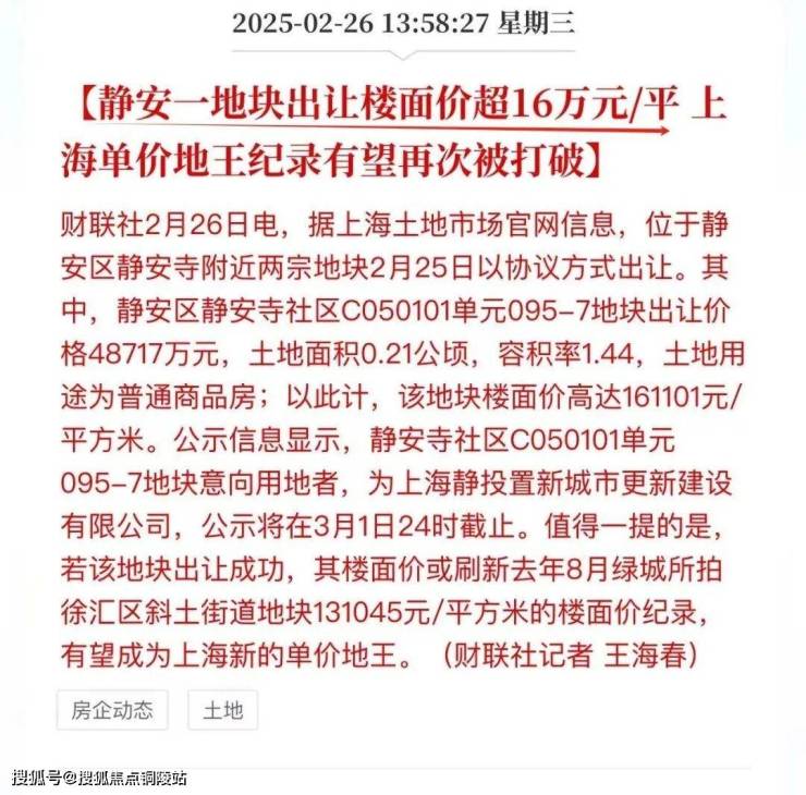早在2025年2月底,“静安新地王”就成为市场焦点。