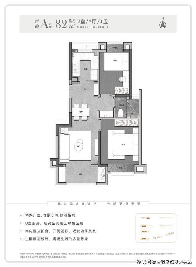 建面约82㎡两房,南向开间约6.3米,除了宽敞的主次卧,还做了全明的三段式分离卫浴。
