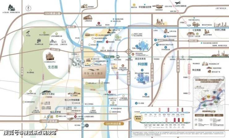 合心规划 产城样板: 【“科创+人文+生态”城市单元示范】华发海上都荟首入松江,携崭新“优+产品体系5.0”,为洞泾、乃至为松江带来目前区域内综合高品质作品。结合上海生态环境保护“十四五“规划,站位国际领先的可持续性项目规划,华发海上都荟结合自身的独特聚合优势,在传统TOD规划之上,不可复制的土地生态资源,向东链接G60科创走廊“以镇命名为区块”洞泾人工智能产业基地;向南直达亚洲大学城之一——松江大学城;北侧紧连上海陆面自然山林资源——佘山国家旅游度假区。板块将区域打造成为“科创+文教+生态”交汇的核心新城模式,划立一个崭新的城市单元示范。