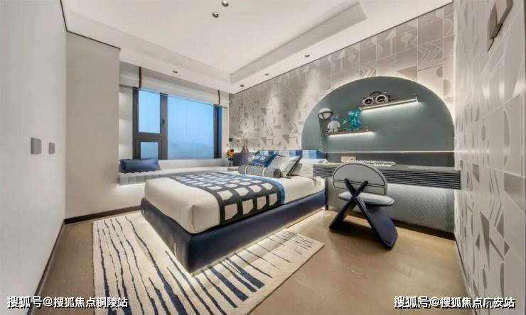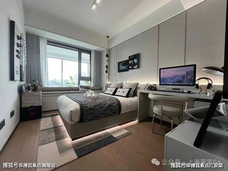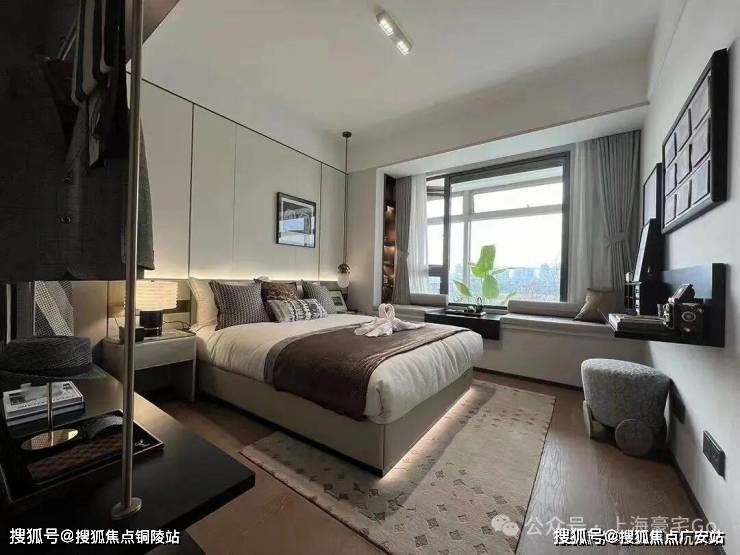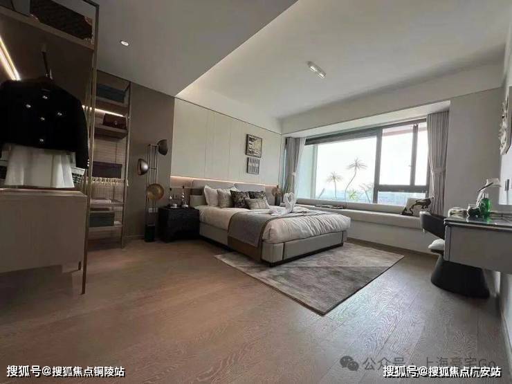 主卧套房设计,贯穿南北,自带卫生间和衣帽间,还有大面积飘窗,舒适度和私密性双爆表!