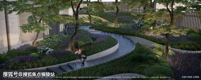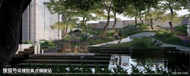 抬高之后的小区,整体景观丰富度,大幅提升:落座于约700㎡的落玉水院,眼底尽现堆坡造园的层叠视觉场域!