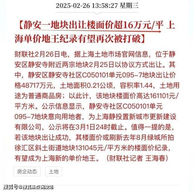 早在2025年2月底,“静安新地王”就成为市场焦点。
