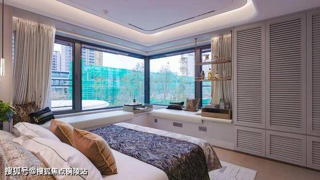 全屋三阳台+四飘窗的布局,搭配主卧270°环幕飘窗,将社区景观与水岸风光融入日常,打造了匹配高阶需求的平层居住范本。