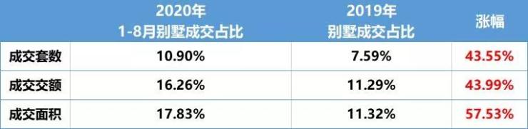 从大量的数据中,我们发现,上海郊外环别墅今年额外的受欢迎,以今年8月份的数据为例,成交套数、成交面积、成交额占比均比去年上涨了40%以上!