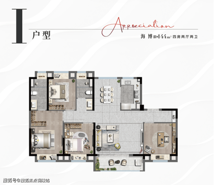 客餐厨阳一体化设计,打造超阔家庭公共活动区;宽境主卧套房,配备独立卫浴、飘窗及衣帽间,兼顾私密性与尊崇感。