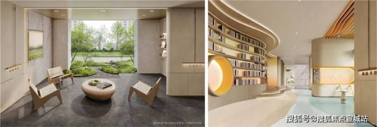 结合建筑、空间、自然环境关系,室内室外联动,呈现一个景观会客、海浪书屋、儿童休闲等多重功能的泛会所架空层,为全龄社交营造一个“有温度、有态度”的邻里空间。