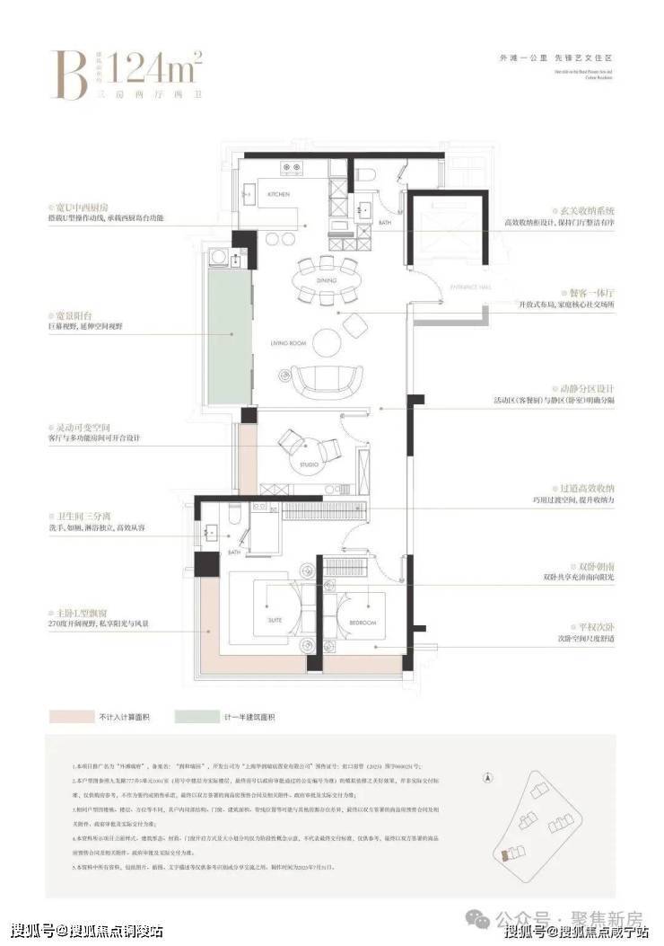 建面约124㎡的边厅“全景舱”户型,是外滩板块极致稀缺的臻品。它以三房布局满足主流家庭需求,更以无遮挡的视野与巨幕般的边厅落地窗,将城市天际线化为私藏画卷。主卧270°L型飘窗,让阳光与风景成为生活的主角。