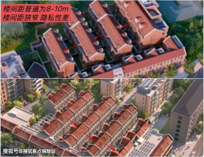 很多市中心低密的风貌别墅,哪怕容积率也在1.2左右,但它们的楼间距并不可观。几乎是在8-10m,宽一点的约12m,楼与楼之间非常紧凑,私密性难以得到保障。