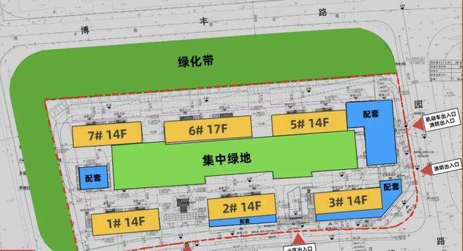 项目拟新建6幢高层住宅,其中5幢14F层高层住宅,1幢17F高层住宅,一幢配套公建,一幢P站 (P站一、P站二合建),地下车库。