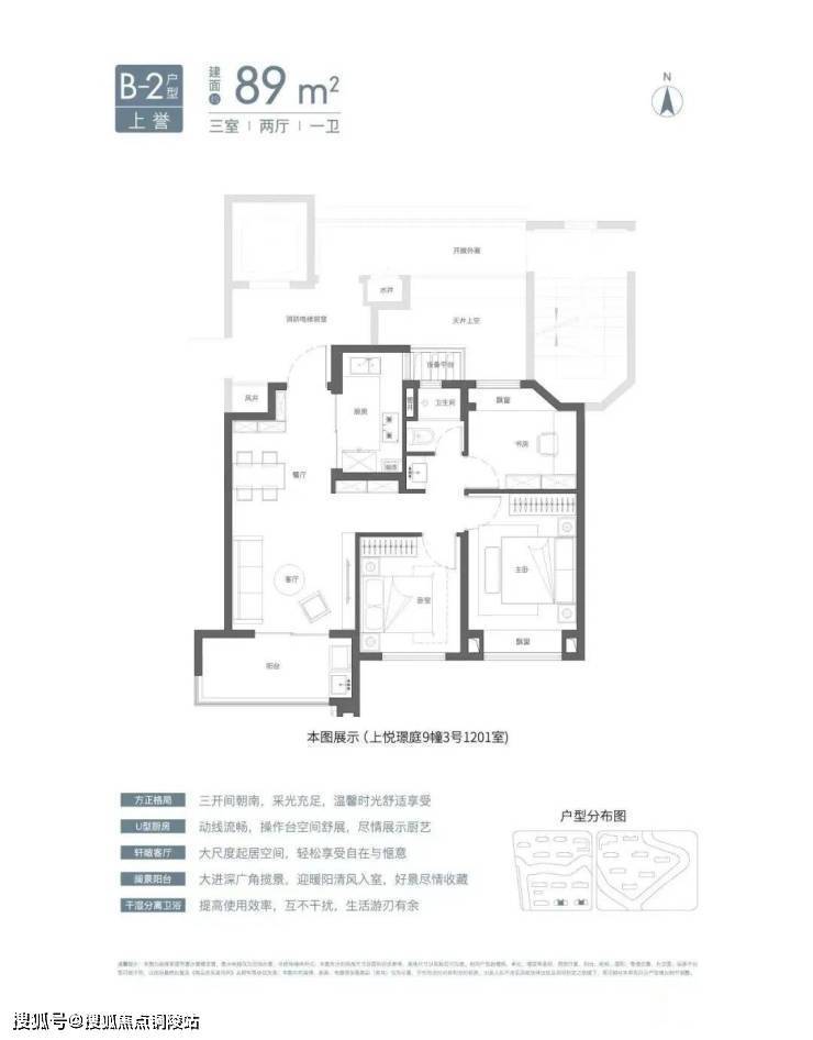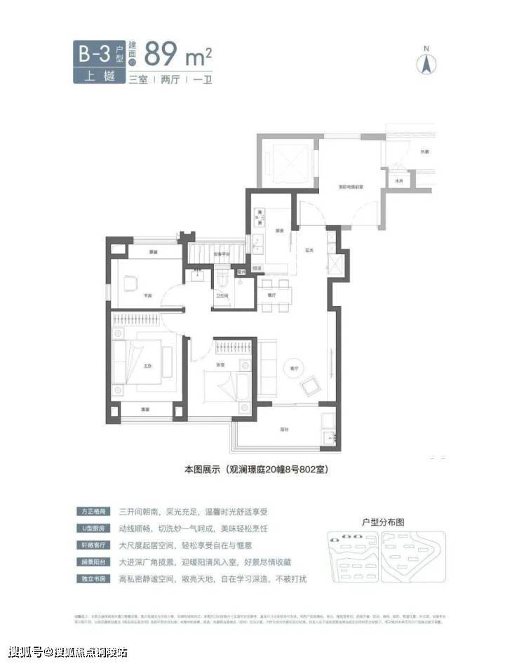 在对百平左右的三房,功能性要求越来越高的今天,国贸虹桥璟上约105㎡户型做到了每一平空间的合理利用,实现了尺度感与功能性兼备,出众产品更出圈,当然备受欢迎。