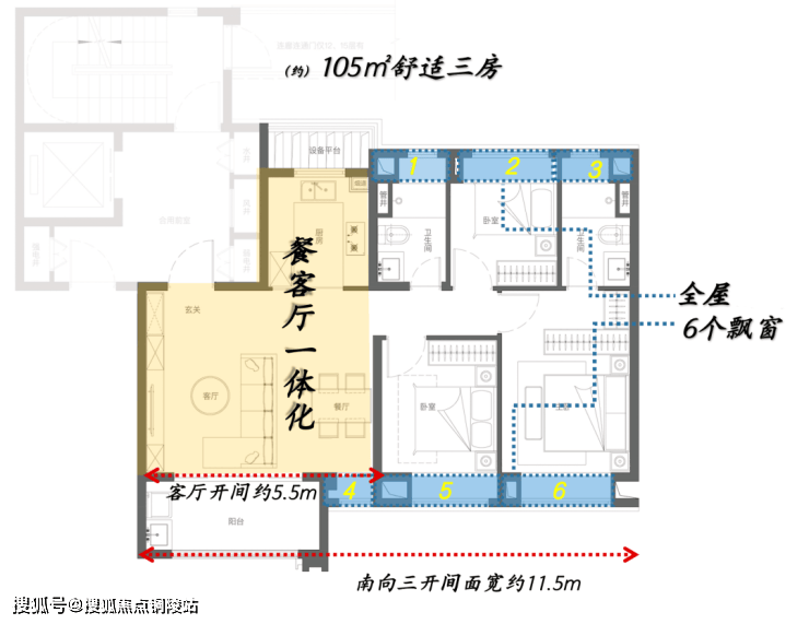 优越的窗墙比,可以最大限度将优美的景观纳入眼帘;南向三开间面宽更是达到了约11.5米,可以说市场同户型面积段产品很难做到这样极致化;功能房间以舒适度为导向服务生活,尺度均做到了当下主流产品水平之上;并且全屋附赠6处飘窗,高附加值令人心动。