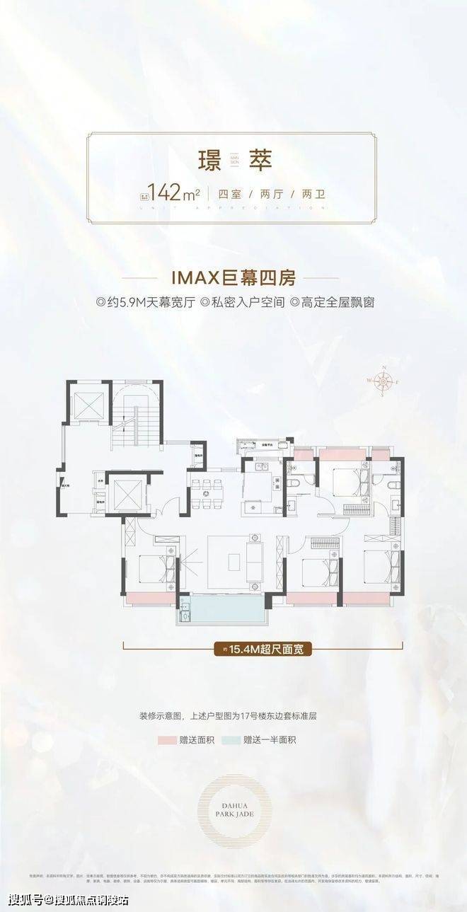 建面约142㎡四房两厅两卫:总价870-950万,两梯两户+四开间朝南,终极改善