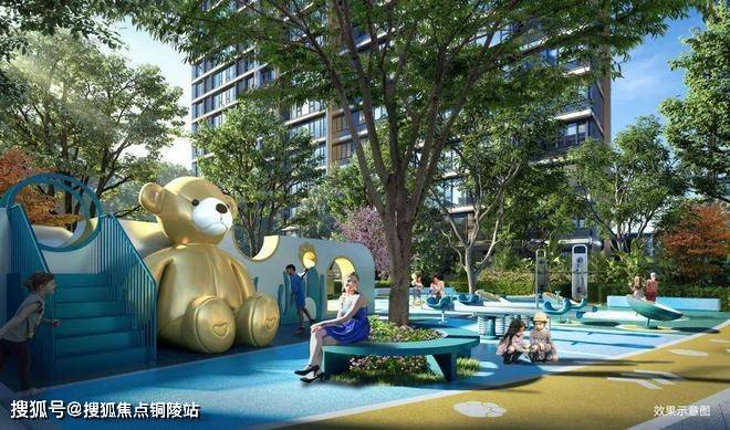 包括“林荫集市”超万方商业盒子、“森林聚场”中央阳光草坪+会客廊架、“熊熊乐园”儿童主题活动区、“轻氧营地”林下会客花园、“仰生森林”长辈运动空间+宠物乐园以及“多肉花园”四大全龄架空层等。