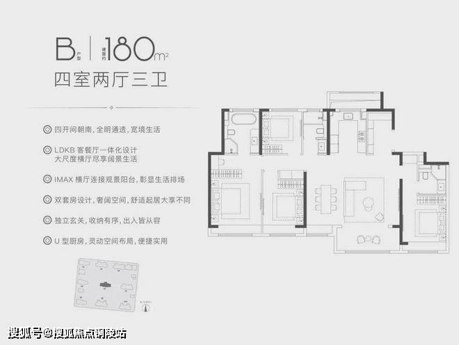 约172㎡和180㎡的4房3卫的户型,南向五开间朝南,