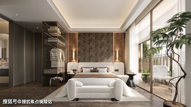 主卧建面约25㎡,自成一方小天地。除了设计有干湿分离的卫浴空间,还特别打造了步入式衣帽间,满足主人的“收藏欲”;加之南北通透的布局,连接双联阳台,阳光浸润生活,清风鲜活呼吸。南向约6.7m双联阳台+270°无敌视野,大尺度通透观景窗,构筑巨幕瞰景视野,窗外风景即是日常的背景画。屋顶瞰景平台,随时打卡社区风景与兰香湖波光。