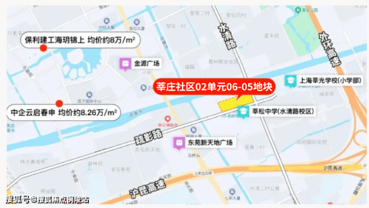 地块周边有莘松中学水清路校区和莘光学校,其中,莘松中学水清路校区就在该地块对面,这两所学校都是闵行区传统的公办名校,均建校超过30年。