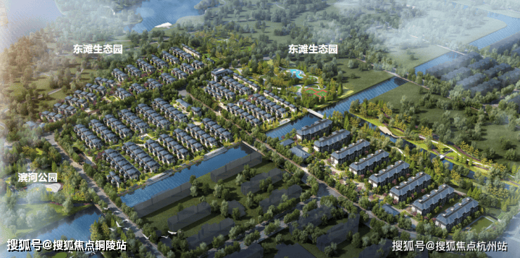 东北两面有东滩生态园,西面是滨河公园,周边水光灵动,归野自然。
