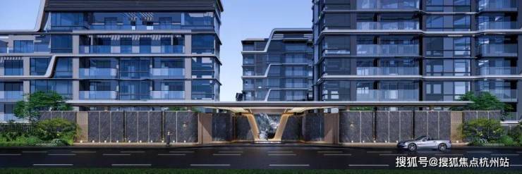 奢阔的社区入口,搭配蓝翡翠镜面奢石,为业主带来双重归家礼仪的同时,也为杨浦滨江增添了一处绝美的网红打卡地。