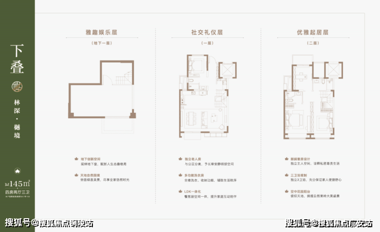 建筑面积约91-144㎡低密叠墅(复式住宅),则为改善置业者提供了新的选择。庭前一方天地、巨幕宽厅、星空露台、地下空间,称得上是城市墅居的理想范本!