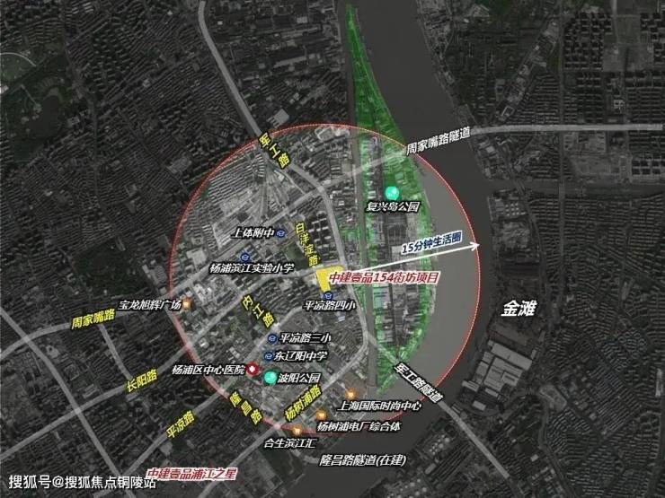 定海街道154街坊项目【即中建壹品·外滩源著】四至范围:东至军工路(中环)、南至平凉路、西至规划白洋淀路、北至长阳路。